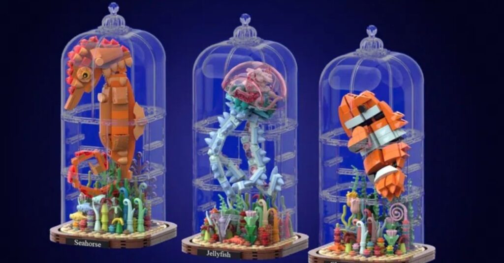Deniz yaşamından ilham alınan bu set toplamda 1164 parçadan oluşuyor. Sette denizanası, palyaço balığı, denizatı gibi deniz hayvanlar ve mercan resif gibi deniz yaşamına dair pek çok figür oluşturulabiliyor. Kaidenin üzerine yerleştirilen bir cam fanus hem deniz altı görünümü etkisi yaratıyor hem de figürlerin bozulmadan sergilenebilmesini sağlıyor. Ayrıca yapılan bazı değişikliklerle LEGO’lar birkaç farklı pozisyonda yerleştirilebiliyor.