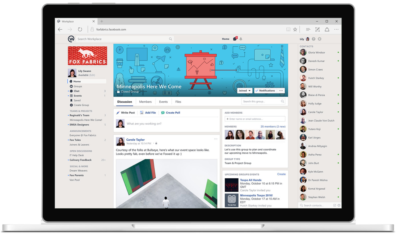 Bu uygulama, şirketlerin kurum içi ağlarını düzene sokmak ve iç haberleşmeleri için birden çok servise güvenme gereksinimlerini azaltıyor. Facebook 1 yıldan fazla bir süredir, 1000’den fazla işyerinde bu uygulamayı test etti ve erişime sahip olanların geri bildirimleri sayesinde hizmetin erken piyasaya sürülmesi gerektiğini düşündü.