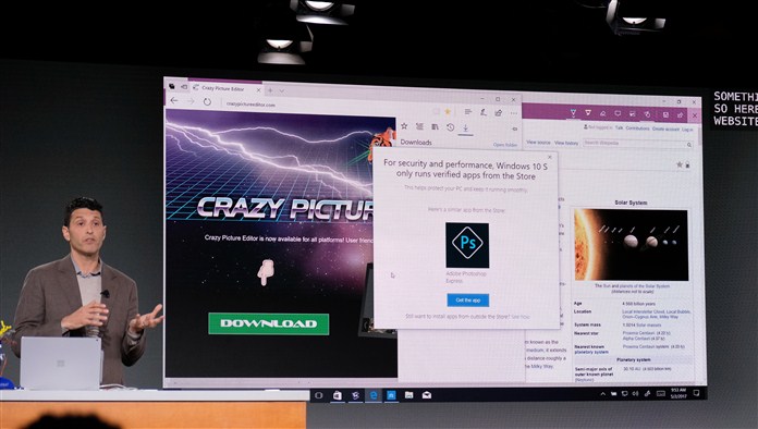 Microsoft’un Windows şefi Terry Myerson, “Windows 10 S’de çalışan her şey Windows Mağazasından indirildi” dedi. Bu masaüstü uygulamalarının yeni Windows sürümünde çalışmayacağı anlamına gelmez, ancak Windows Store‘da özel olarak paketlenip listelenmelidir.