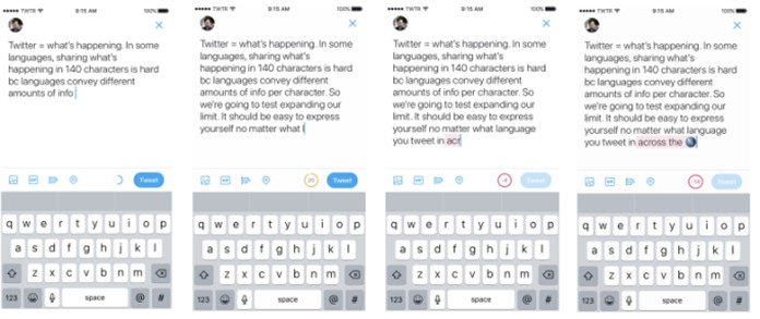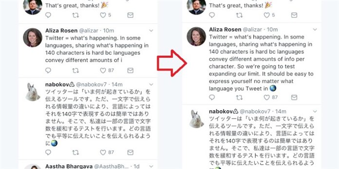 Korece, Çince ve Japonca dillerinde bir karakter ile iki kat daha fazla bilgi aktarımı yapılabilir. Bunun ardından şirket, çeşitli bölgelerde tweet uzunluğunun ne anlama geldiğini açıkladı ve Japonca’daki tweetlerin yalnızca % 0,4’ünün 140 karakteri doldurduğunu ancak bu durumun İngilizce tweetlerde % 9’u bulduğunu keşfetti. Değişiklik sonucunda bazı kullanıcılar Twitter’ı daha az kısıtlayıcı ve daha uzun konuşmaları teşvik edici olarak görüyorken, diğer kullanıcıların Twitter’ın kısalık üzerine odaklanmasının diğer mecralardan farklı ve aslında hizmetinin özü olduğunu söylüyor.